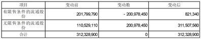 限定本公告出具日,公司总股本为312,328,900股,其中有限售条目流通股为201,799,790股,无尽售条目流通股为110,529,110股。