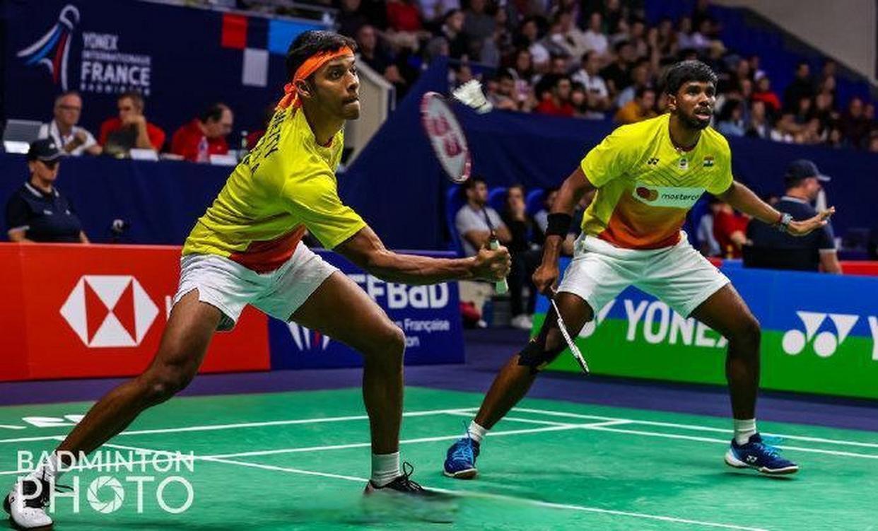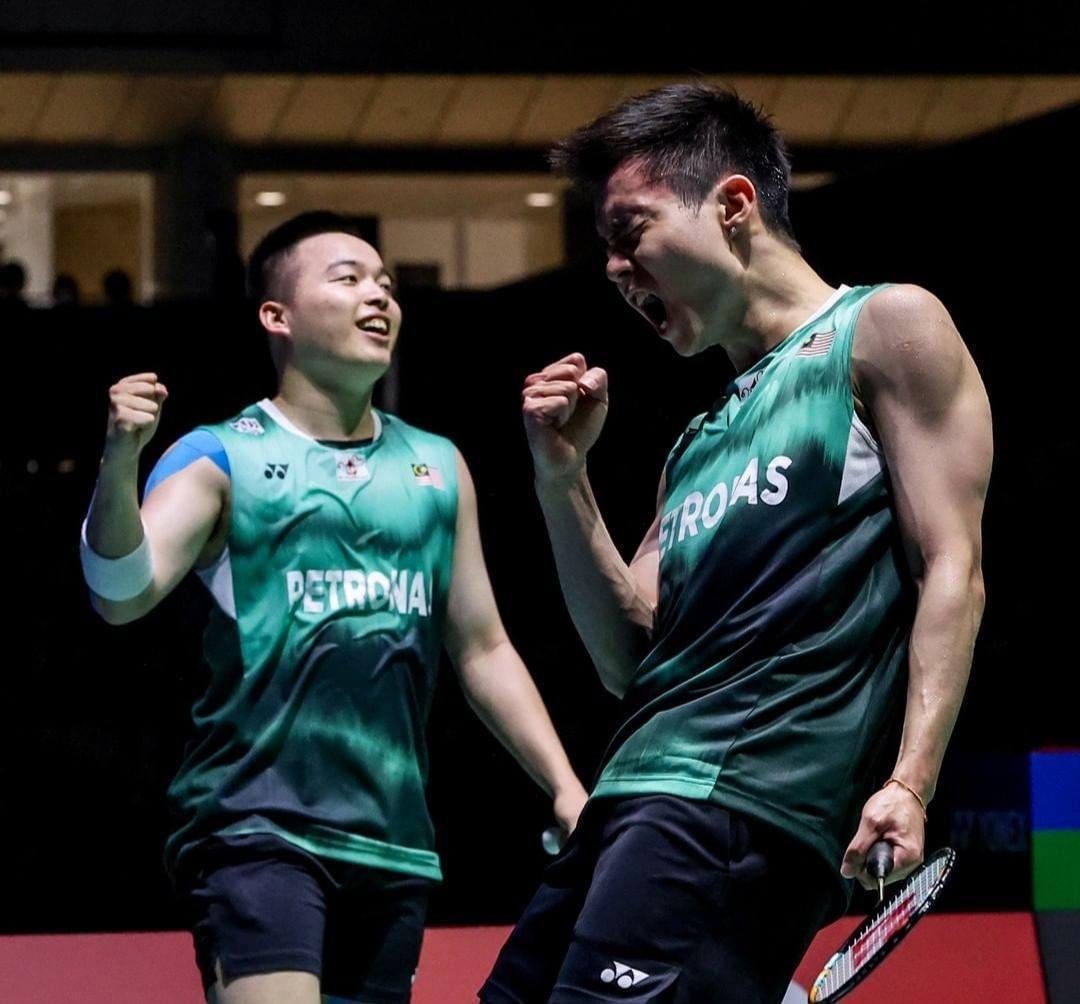 马来西亚组合,宇宙第三谢定峰/苏伟译19-21,21-10,21-18兰基雷迪/谢迪,决胜局谢苏20-11领先赢得赛点,印度组合连救7个赛点未果。