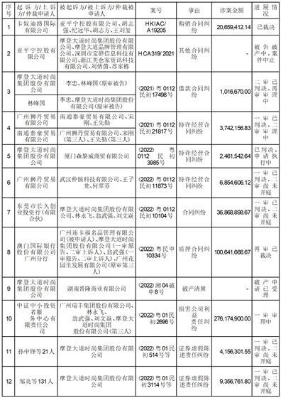遣散本公告走漏日,摩登大路前锋集团股份有限公司(以下简称“公司”)及子公司一语气十二个月的累计未决诉讼及仲裁事项波及金额共计东说念主民币484,726,441.97元,占公司最近一期经审计净财富的95.82%。根据《深圳证券往返所股票上市法令》的相关礼貌,现将联系诉讼、仲裁事项公告如下: